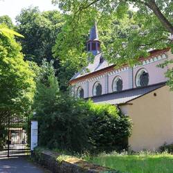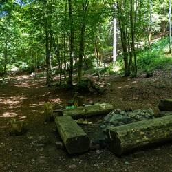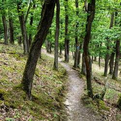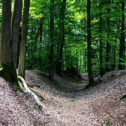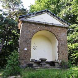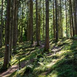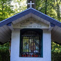 Aber bringt ja nichts, irgendwann muss ich weiter. Als ich so durch Marpingen gehe, komme ich an mehreren Pilgerstätten vorbei. Als ich im Härtelwald ankomme, klärt sich das Rätsel: dort befindet sich eine Marienverehrungsstätte. 1876/1877 soll hier drei Mädchen mehrfach die Jungfrau Maria erschienen sein. Von Anhängern wird der Ort als „deutsches Lourdes“ bezeichnet. Auf dem zugehörigen Kreuzweg kämpfe ich mich bergan.