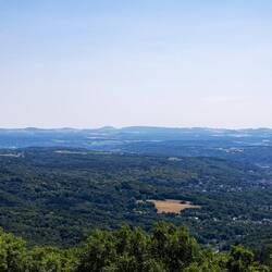 Kurz vor Niederalben läuft mir wieder ein schönes Reh vor die Kamera. Wobei ich mir gar nicht sicher bin, ob das ein Reh war. Oder doch ein Hirsch? 🤷♂️ Allerdings verpufft die Freude ziemlich schnell, als ich den Aufstieg zum Mittagsfelsen sehe. In zahlreichen engen Serpentinen zieht sich der Weg hinauf. Wie gestern auch bieten sich zahlreiche geniale Ausblicke über die Pfälzer Landschaft.