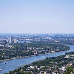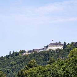 Aber die Freude auf die Aussichten sollte nicht enttäuscht werden. Schon auf dem Rabenlay Skywalk frohlockt mein Herz. Auch die Kultur kommt nicht zu kurz, ich besichtige die Klosterruine Heisterbach. Idealer Ort, um auch gleich mein Wasser nachzufüllen. Und dann kommt auch gleich der erste anspruchsvolle Anstieg auf den Petersberg. Im dort mäßigen Hotel haben früher die Staatsgäste genächtigt, als Bonn noch die Hauptstadt war. Leider übersehe ich den Ausblick am Biergarten und stelle dies erst kurz vor dem Abstieg fest, also noch mal zurück. Auch wieder extra Meter. 🙈