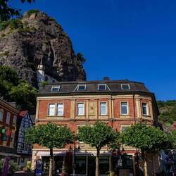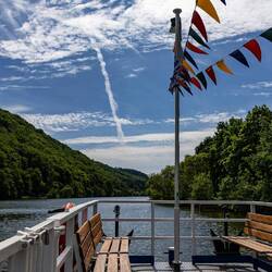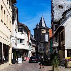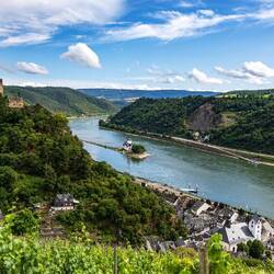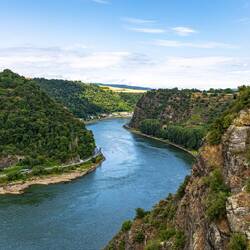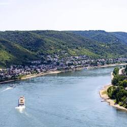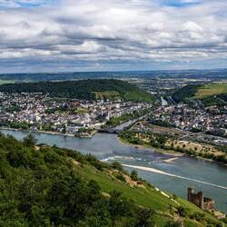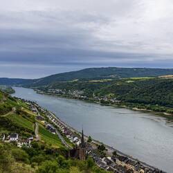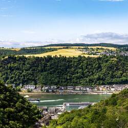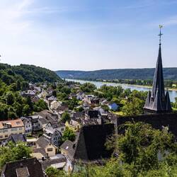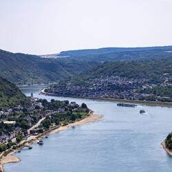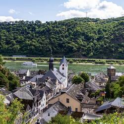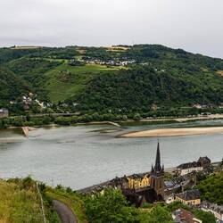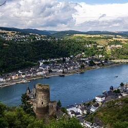Natürlich geht es gleich wieder steil zur Burg hinauf, es ist so schwül, dass mein Shirt oben angekommen an mir klebt. Über das Plateau wandere ich nach Sankt Goarshausen. Ich folge aber nicht dem direkten Weg, sondern nehme den Abstecher über den Rabenacksteig. Den habe ich damals auch gemacht. Allerdings ist er mit kleinem Gepäck leichter als mit der Marschausrüstung. Über Leitern geht es steil rauf und runter. Direkt am Fuß angekommen, suche ich den Bäcker im Supermarkt auf. Ich brauche nen Kaffee und wenn ich eh schon da bin, vertilge ich auch zwei belegte Brötchen.
