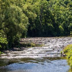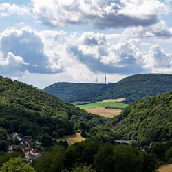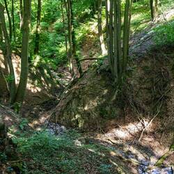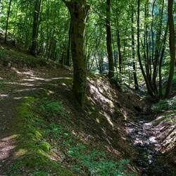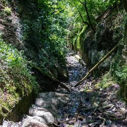 Bis hierhin war schon gut, aber es wird noch besser. Es wartet die Ruppertsklamm. Aber die muss ich mir erst erarbeiten. Es geht gefühlt ewig in Kurven hin und her, bis ich die Grillhütte am oberen Ende erreiche. Das kalte Wasser der Quelle daneben ist sehr erfrischend. Ich gehe direkt am Flussbett und teilweise im Flussbett durch die Klamm. Ab und zu wird man auch durch Seile unterstützt. Ein herrlicher Ort. Wenn ihr jetzt denkt, dass ich unten wieder am Rhein raus komme, muss ich euch enttäuschen. Die Lahn hat hier ihr Seitental gegraben.