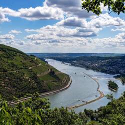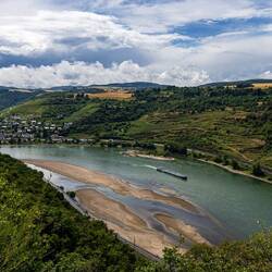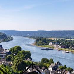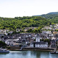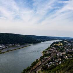 Vor einigen Jahren bin ich die Strecke Braubach Rüdesheim schon mal gelaufen, nur in umgekehrter Richtung. Damals haben wir uns vier Tage Zeit genommen. Die 100 km kann ich langsam angehen, da ich am Freitag Abend in Rüdesheim sein will und mich da mal wieder mit meiner Freundin treffe. Deshalb schneide ich die Strecke in drei ungefähr gleich lange Stücke. Dennoch kommen heute 1.500 hm zusammen. Und das am scheinbar wärmsten Tag in dieser Woche.