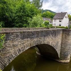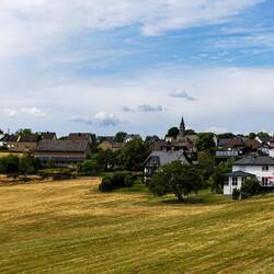 In Altwied komme ich an einer schönen Burgruine vorbei und mache meine erste Essenspause am Friedhof. Oberhalb der Wied geht es Richtung Bengsdorf, bevor sich der Weg steil im Laubachtal nach oben zieht. Als ich gerade um eine enge Kurve gehe, fliegt tatsächlich wieder ein Schwarzstorch davon.