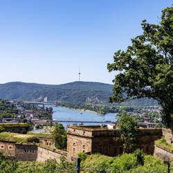Durch die Strapazen der letzten Tage bleibe ich aktuell nur lange satt, der Hiker Hunger setzt so langsam richtig ein. Obwohl ich gut gefrühstückt habe, knurrt um 10 schon wieder der Magen. Also gleich mal nen Wrap nachschieben. Mit wiedergewonnenen Kräften geht es zur Aussichtsplattform Koblenzer Kanten. Die Aussicht ist phänomenal. Unweit davon befindet sich auch die Festung Ehrenbreitstein, in der sich auch eine der beliebtesten Jugendherbergen befindet. Der Weg führt knapp unterhalb der Festung vorbei. Über verwinkelte Treppen steige ich hinab an den Rhein, an dem ich ein Stück entlang gehe. Sehr abwechslungsreich heute.