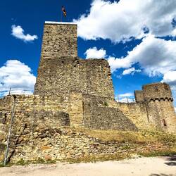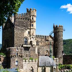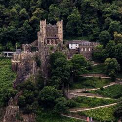 Beim Frühstück treffe ich ein Wanderpaar, welches auch auf dem Rheinsteig geht. Als ich die Unterkunft verlasse, steht das Gepäck schon für den Transport bereit. Ob es auffällt, wenn ich meinen Rucksack einfach dazu stelle?! Aber sie gehen heute nicht ganz so weit wie ich. Tatsächlich empfängt mich vor der Tür gleich wieder diese schwül warme Luft. Und sobald mich die Sonne trifft, merke ich, wie intensiv es heute wird. Als ich auf der Marksburg ankomme, bin ich schon komplett nass. Das kann ja heiter werden. 🙈 Mit mir kommt schon der erste Touristenbus an. Also schnell weg. 💨