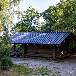 Die nächsten Aufstiege in der Mittagshitze sind mörderisch. Ich lerne, dass die Sonne an den Hängen hier im 45 Grad Winkel einfällt, scheinbar perfekt, um mich mit dem Hang zu verschmelzen. Als ich mich den beiden „Feindlichen Brüdern“, den Burgen Sterrenberg und Liebenstein nähere, freue ich mich auf ein kühles Weizen im Burgrestaurant. Doch wie so oft war es leider geschlossen. Einen weiteren schweißtreibenden Anstieg später komme ich durch Lykershausen und mache Halt bei Günters Wanderkiosk. Er lädt mich auf ein Weizen und ein Eis ein und füllt mir auch noch mein Wasser auf. Er erzählt, dass er und Uschi mit ihrer Wanderstation die beiden verbliebenen Dinosaurier am Rheinsteig sind. Zu Uschi komme ich 4 Kilometer später. Da ich nicht wusste, ob sie auf hat, fülle ich mir davor meinen 2-Liter-Wasserbeutel an einer Quelle, damit ich genug Wasser zum kochen habe. Bei Uschi gönne ich mir noch mal ein Weizen und nen Kuchen, was denn sonst, und lege dann noch die verbleibenden 4 Kilometer bis zu meinem heutigen Nachtquartier zurück. In dieser Hütte hatte ich damals schon Unterschlupf bei Regen gesucht. 😊Read more