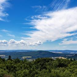 Doch dann beginnt langsam der Aufstieg auf den Donnersberg. Über ihn habe ich vor einiger Zeit schon mal ne Runde gedreht, von daher sind mir einige Wege bekannt. Ich komme an der ersten bewirtschafteten Hütte des Pfälzer Waldvereins vorbei. Doch leider haben die meisten nur am Wochenende geöffnet. Sehr schade. Gut, dass morgen schon Wochenende ist. 🥰 Der Donnersberg ist mit seinen 687 m der höchste Berg der Pfalz. Der Ausblick von oben über die Ebene einfach genial.