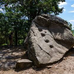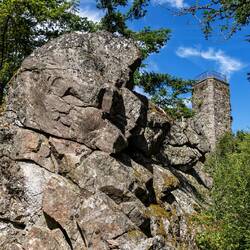 Ziemlich bald danach beginnt der Pfälzer Wald. Dieser heißt uns gleich willkommen mit schönen Trails und dem typisch federnden Boden. Auf dem Peterskopf steht der imposante Bismarckturm. Heute hatte das Kiosk darin geöffnet und wir belohnen uns mit einem Weizen, bevor wir die Stufen zur Spitze des Turms erklimmen. Sowas nennt man, glaube ich, aktive Pause. Über Teufelsstein, Heidenmauer, Kaiser Wilhelm Höhe und Kriemhildenstuhl steigen wir ab nach Bad Dürkheim. Besonders der Kriemhildenstuhl hat es mir angetan. Der Steinbruch wurde von den Römern betrieben und es finden sich zahlreiche Felsbilder darin.