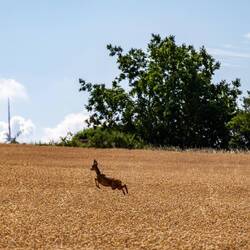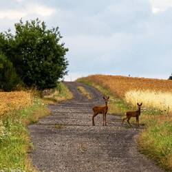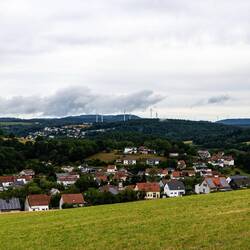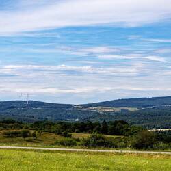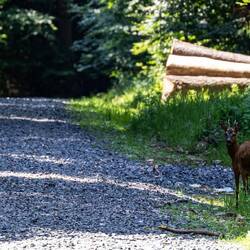 Es soll nicht regnen, haben sie gesagt. Uns werde ich wenig später nass von oben. Hmpf. Bleibt auch nicht lange. Und als ich mich der 2.500 km Marke nähere kommt schon die Sonne raus. Heute sehe ich zahlreiche Rehe. Und einige bleiben auch wieder vor der Kamera stehen. 🥰 Immer wieder bieten sich heute geniale Aussichten, die zahlreichen Windräder empfinde ich nicht als störend. Oberhalb von Oberkirchen steht am Aussichtspunkt ein Kühlschrank mit Vertrauenskasse. Ich gönne mir ein Bier und ein Sportgetränk.