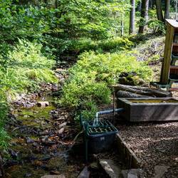 Direkt am Ortsrand ging es steil nach oben. Auf den Wegen war heute sehr viel tierisches Treiben: Hasen und Rehe waren aber meist schneller als ich. Von Würzweiler geht es hinauf zum höchsten Dorf der Pfalz, Ruppertsecken. Von hier oben hat man eine herrliche Weitsicht. Ich hatte mich schon auf den Getränkeautomaten gefreut. Und er akzeptiert sogar Karten. Allerdings nur EC und kein Bargeld mehr. Ich habe leider nur ne Kreditkarte. Also gehe ich leer aus. Hmpf. So sehr ich diese Automaten liebe, sollte man sich mal auf einheitliche Akzeptanz von Zahlungsmitteln einigen. Na dann lege ich eben an ner Quelle im Wald einige Kilometer später eine schöne Pause ein.