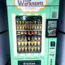 Vor dem Wendelinus Golfplatz sollte noch ein Lebensmittelautomat kommen. Leider existiert dieser wegen Einbruch aktuell nicht. Direkt daneben erregt ein Eis-Automat meine Aufmerksamkeit. Eigentlich das falsche Wetter, aber was soll’s. Spaghetti-Eis hatte ich schon lange nicht mehr.