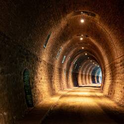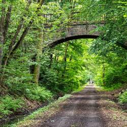 Die kommenden 10-12 Kilometer verlaufen auf einer ehemaligen Bahntrasse, sogar mit langem Tunnel. Und absolut null Steigung, einfach eben. Einzige Abwechslung bietet der Bahnhof Schwarzerden, wo es auch Schaulokomotiven zu bewundern gibt. Danach verlasse ich das Saarland wieder und bin jetzt ne Weile in Rheinland-Pfalz.