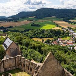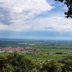 Und womit haben wir gleich wieder an? Früchte der Natur naschen. Nachdem wir die Autobahn unterquert hatten, erreichen wir Neuleiningen mit seiner hübschen Burg. Hier war ich vor ein paar Jahren schon mal auf dem Burgenweg. Von der Burg hat man eine herrliche Sicht auf die Rheinebene.