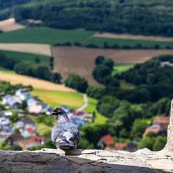 Leider musste ich heute Morgen schon wieder meine Freundin verabschieden. Sie wurde am Vormittag von einem Kollegen abgelöst, der mich bis nach Neustadt begleitet. Nach Königsbach fordert der Weg gleich die Beinmuskulatur, erster hohe Punkt ist das Weinbiethaus. Wir machen Snackpause und gehen zur Aussicht auf den Turm. Nach dem Abstieg entdecke ich ein Vogelnest am Fenster. 🥰 An hübschen Felsen vorbei marschieren wir zum Bergstein, der herrliche Aussicht über Neustadt bietet. Wir kommen an zwei Schuhbäumen vorbei, an denen alte Schuhe ausgemustert werden. 🙈 Durch genialen typisch Pfälzer Wald geht es zur Wolfsburg, bevor wir direkt Kurs auf Neustadt nehmen.