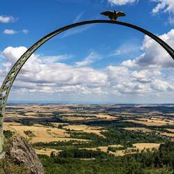 Der Abstieg vom Donnersberg erfolgt über eines der meist fotografiertesten Motive der Pfalz, den Adlerbogen. Von Dannenfels geht es dann final über Forstwege nach Kirchheimbolanden. Später am Abend hole ich meine Freundin am Bahnhof ab, damit wir dann die kommenden beiden Tage gemeinsam nutzen können.