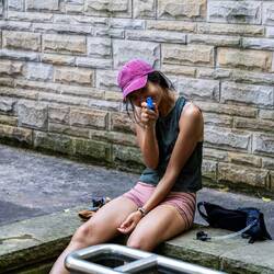 Dazu geht es auch gleich mal auf den Hungerberg. Dabei leide ich doch gar keinen Hunger. 😊 Oberhalb von Albisheim gewährt uns der perfekt gelegene Rastplatz am Wartturm eine geniale Aussicht. Hier würden wir am liebsten bleiben. Die Pfrimm entlang wandern wir auf einem schönen Pfad vorbei an Wiesen und Feldern. In einem dieser Felder verstecken sich 4 Rehe, die dann fotogen davon springen. Schon hier zeigt sich, dass die Sonne heute sehr intensiv ist. Deshalb stoppen wir in Wachenheim am Kneippbecken. Saukalt. Nach zwei Runden sind die Füße taub genug. Dann packt Hang noch ihre Wasserspritzpistole aus und der Spaß kann beginnen. 🙈