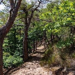 Der Bäcker hat uns heute Morgen unsere gewünschten Brötchen frisch belegt, da sie so früh noch nicht fertig waren. Nach zwei Brötchen und einem Käsekuchen fühle ich mich halbwegs startklar. Wir schreiben die ersten 100 Höhenmeter in die Bücher, um wieder auf den Trail zu kommen.
