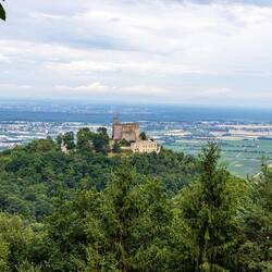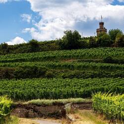 Über den Zigeunerfels steigen wir auf den Nollenkopf und gleich wieder runter Richtung Hambacher Schloss. Dies ist nicht nur schön anzusehen, sondern ein wichtiger Ort für die deutsche Demokratie. In zahlreichen Kurven und Wendungen bewege ich mich Schritt für Schritt weiter hinauf zum Hohe Loog Haus. Ich komme tatsächlich noch zu meinem kühlen Weizen. Runter und wieder hoch auf die Kalmit. Am Ende über zahlreiche Stufen. Ufff. Ist wie Achterbahnfahren heute, nur etwas langsamer.