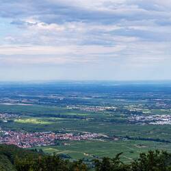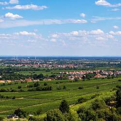 In Neustadt gönnen wir uns noch ein Eis. Leider fallen da schon die ersten Regentropfen. Ich verabschiede mich von Thomas. Als ich aus dem Supermarkt komme, regnet es heftiger. Also schnell Wanderer und Gepäck regensicher einpacken und weiter geht es. Von 127 m Höhe steige ich auf den höchsten Berg des Pfälzer Walds, die Kalmit. Bevor ich diese aber erreiche, gibt es zahlreiche Zwischenziele.