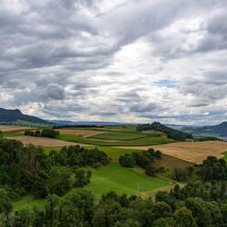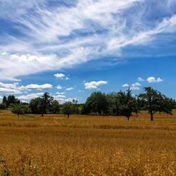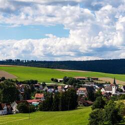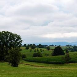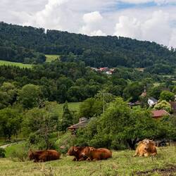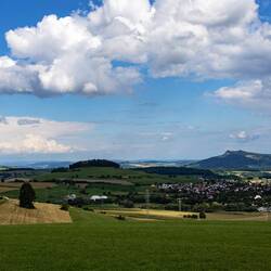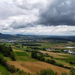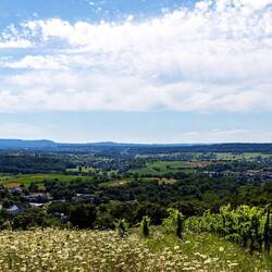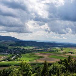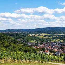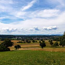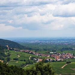 Die erste Hälfte verläuft größtenteils durch Wald, nichts Spektakuläres. Die zweite meist entlang von Streuobstwiesen und Weinbergen. Hier bieten sich regelmäßig geniale Fernblicke. Im Hintergrund erheben sich die ersten Hügel des Schwarzwalds. In Ellmendingen begegnet mir ein Mann auf der Suche nach seinem Hund. Auf meine Frage, ob er öfter davon läuft, meint er nur. Er hat eben was erlebt. Genaueres habe ich aber nicht erfahren.