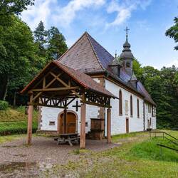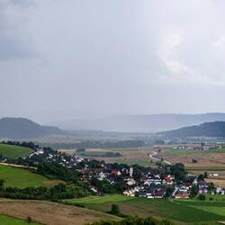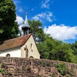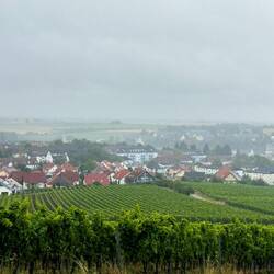 Dann geht es eben doch wieder in Regenklamotten weiter. Als es stärker zu regnen beginnt, mache ich nochmals ne Wrappause in einem Unterstand oberhalb von Bad Bergzabern. Immer dann, wenn ich überlege, ob ich das Regenzeugs ausziehen soll, wird es wieder schlimmer. In Bad Bergzabern hört es kurz auf, aber kurz nach Dörrenbach kommt es eimerweise runter. Wenig später finde ich Unterschlupf an der Kolmerberg-Kapelle, da bin ich aber schon komplett durch. Dörrenbach ist ein idyllisches, kleines Weindörfchen. Irgendwann hört der Regen auf, es kommt sogar die Sonne durch.