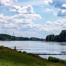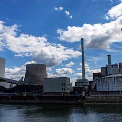 Mehrere Stunden bin ich im Wald. Sobald ich Wörth am Rhein erreiche wird es deshalb Zeit für eine Stärkung: 500 ml Eis und 2 Colas. Bis zum Rhein ist der Weg nicht wirklich ansprechend. Er führt an einer vielbefahrenen Straße entlang. Der Rhein bildet hier die Grenze zwischen Rheinland-Pfalz und Baden-Württemberg. Passend zum Rhein wechsle ich auf den Rheinauenweg. Von dem habe ich auch schon mehrere Abschnitte gemacht. Persönlich kann ich die Rheinauen bei Karlsruhe empfehlen, auch wenn mein heutiger Abschnitt nicht die besten Abschnitte zeigt. Aber spannend ist der Abschnitt am Dampfkraftwerk vorbei, eine beeindruckende Anlage. In den Rheinauen vollende ich auch Kilometer 2.900, unglaublich.