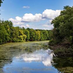 Auch das letzte Stück Richtung Karlsruher Hauptbahnhof weiß mich zu begeistern. Meist gehe ich auf dem Radweg entlang der Alb. Hier ist am späten Nachmittag sehr viel los, vor allem Radler zieht es hier lang. Ich komme am „Das FEST“ Gelände vorbei. Hier wird fleißig aufgebaut, da nächste Woche das Festival stattfindet. In einem Teich entdecke ich sogar Nutrias.
