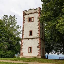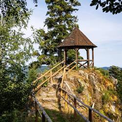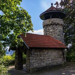 Mir kommt ein Wanderer, Jochen aka Gonzo, entgegen und ich sage irgendwas Saloppes. Da dreht er um und sagt, ich begleite dich noch ein Stück. Und als wir dann an ner Hütte vorbei kommen, bietet er mir ein Getränk an. Er organisiert ein 24h Wanderevent für den lokalen Schwarzwaldverein Straubenhardt. Und natürlich interessiert er sich auch für meine große Wanderung. Später an der Schwanner Warte treffe ich ihn noch mal kurz. Davor wird aber das Neuenbürger Schloss erklommen, wieder ins Tal abgestiegen und dann geht es Meter für Meter bergauf zur Warte. Der Anstieg geht weiter bis auf den Heuberg, den höchsten Berg des Enzkreises.
