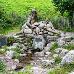 Die letzten 11 Kilometer haben es dann noch mal in sich. Es geht hinab nach Dernbach. Von da nach Eußerthal, Gräfenhausen und final nach Annweiler. Allerdings befindet sich dazwischen jeweils ein saftiger Anstieg, der auf der anderen Seite auch wieder hinab gestiegen werden muss. An der Holderquelle treffe ich auf eine junge Wandererin. Ich spreche sie an. „No German.“ Auf Englisch kommen wir ins Gespräch. Hailee ist Australierin und wandert gerade den NST inoffiziell. Sie ist vor einigen Tagen in Kirchheimbolanden gestartet und will den Trail bis zum Ende gehen. Wir verlieren uns in Wandertalk. Irgendwann muss ich aber weiter.