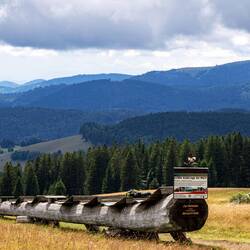 Am Ruhestein steht das moderne Nationalparkzentrum. Patricia meinte gestern, dass es sehr lohnenswert ist. Aber so beim wandern ist mir nicht der Sinn nach Besuch. Also weiter Richtung Schliffkopf. Mir kommt der Weg hier bekannt vor. Da fällt mir ein, dass ich die Strecke vom Schliffkopf bis zum Lotharpfad schon mal gegangen bin. Der Lotharpfad ist ähnlich zum Kyrillpfad im Sauerland. Vor einigen Jahren hat hier Sturm Lothar gewütet, dessen Schäden man auf dem Pfad erleben kann.