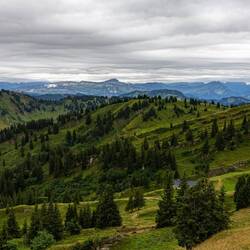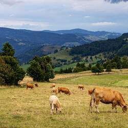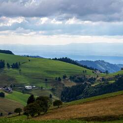 Der Himmel wird immer dunkler, es könnte bald ein Gewitter kommen. Aber auf den nächsten Kilometern komme ich an zahlreichen Hütten vorbei, wo ich mich zur Not unterstellen könnte. Immer wieder gibt es schöne Ausblicke Richtung Rheinebene, allerdings ist alles ziemlich dunkel und die Sicht dadurch nicht so genial. Kurz vor der Hahnenfalzhütte beginnt es tatsächlich zu tröpfeln, aber ich bleibe optimistisch und lasse das Regenzeug weg. Und tatsächlich wird es nicht stärker und hört auch wieder auf, als ich meine Bleibe für die Nacht erreiche. Schade, die Natur bräuchte es.Read more