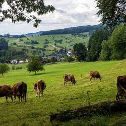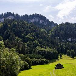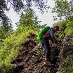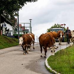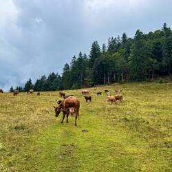 Am Ende holt uns dann doch noch der Regen ein, aber während es drumherum heftig regnet, tröpfelt es nur ein wenig. Fast kerzengerade steigen wir die 700 m nach Ofterschwang ab und freuen uns auf ein leckeres Abendessen. Da die Pilze wahrscheinlich bis Ende der Woche kaputt gegangen wären, schenken wir diese der Hotelküche. Morgen wird es wirklich entspannt, versprochen!Read more