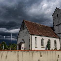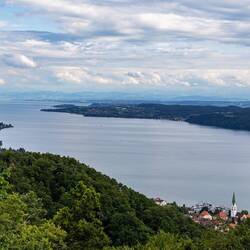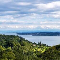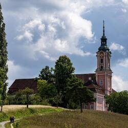 Heute ist richtig gutes Wetter, endlich startet der Tag mal mit Sonne. Aber schon bald tauchen am Horizont Gewitterwolken auf. Als ich zur Birnauer Basilika komme, ist der Himmel tiefdunkel. Ich denke mir, gleich geht es los. Aber irgendwie zieht die Front an mir vorbei, puh, Glück gehabt. So schön, wie der Bodensee Rundweg ist, allein ist man hier nie. Tausende Fahrräder rasen von hinten und von vorne an mir vorbei, natürlich alle mit e-Antrieb. Meine nächste Fernwanderung mache ich dann mit Exoskelett. 🤣