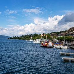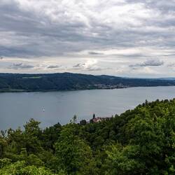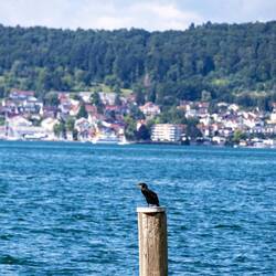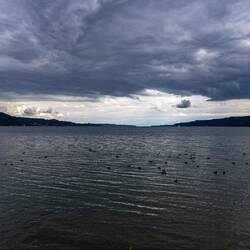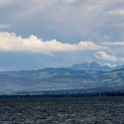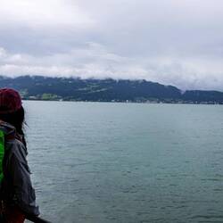 Von Immenstaad bekomme ich nicht viel mit, es hat leicht angefangen zu regnen. Doch wenig später hört es schon wieder auf. Dennoch befinden sich ringsum dunkle Gewitterwolken. Der Weg zwischen Immenstaad und Fischbach läuft direkt neben der Straße, die Geräuschkulisse nervt etwas. Aus der Ferne sehe ich zwei Wanderer mit großem Gepäck. Vladi und seine Freundin laufen mit ihrem Sohn mehrere Tage im den Bodensee. Der Sohn fährt mit dem Rad nebenher. Sie sind total begeistert von meiner Wanderung und träumen von einem Jahr Auszeit. Wahrscheinlich sehe ich sie morgen noch mal.