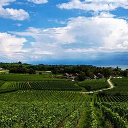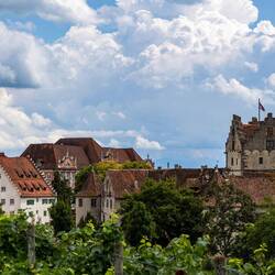 Bei Unteruhldingen komme ich an den berühmten Pfahlbauten vorbei. Die ich aber nicht besuche, dafür ist mir zu viel los. Der Weg macht einen kurzen Schlenker durch die Meersburger Altstadt, sehr schöne historische Gebäude. Am Wegesrand ziehen sich nun wieder ewige Weinberge den Hang hinauf. Dazwischen erhebt sich eine Gedenkstätte für Kriegsopfer. Bei Hagnau sitzen viele Menschen in kleinen Weinlokalen und gönnen sich einen kühlen Wein. Ich hole mir da lieber ein großes Eis.