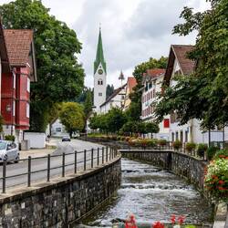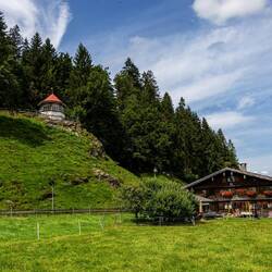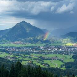 In Schleifen wandern wir heute auf Oberstdorf zu und haben dabei immer die Berge am Ende des Tals im Blick. Wir starten bei Sonne aber immer mehr Wolken sammeln sich um die Gipfel. Von Ofterschwang steigen wir noch die restlichen Meter hinab ins Tal. Moore, Wiesen und Wald wechseln sich auf unseren Weg zur Iller ab. Glasklar fließt diese mit ordentlicher Strömung durch ihr Bett. In Fischen machen wir eine gemütliche Pause.