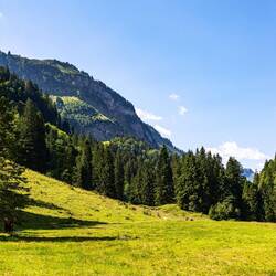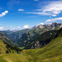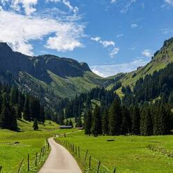Was für ein genialer Abschluss heute. Das Wetter ist perfekt, strahlend blauer Himmel und Sonne. Munter laufen wir aus Oberstdorf raus. Direkt bleibt mir die Spucke weg. Berge sprechen mich doch mehr an als Mittelgebirge.