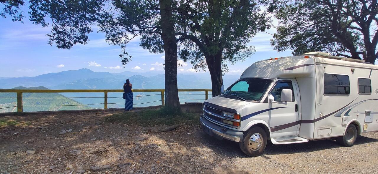 Había que darle un descanso al camper (y al chofer) después de un buen rato subiendo lomas. Aprovechamos para almorzar, ir al baño y, lo más importante, dejar constancia del hermoso paisaje.