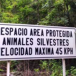 Justo antes de entrar en el área protegida te dan un papel con la hora exacta a la que entraste, a los 17km (en la entrada a Tikal) vuelven a chequear la hora para asegurarse de que no recorriste esa distancia a más de los 45km/h establecidos; todo para proteger la fauna de la zona.Lue lisää