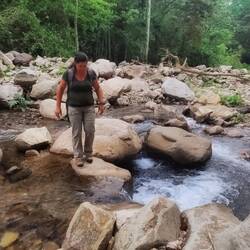 Luego de caminar kilómetros por el accidentado terreno montañoso, entre cultivos de café, plátano y malanga, luego de cruzar varios arroyos de aguas perfectamente transparentes, tras saludar a una docena de campesinos que hacían sus labores o simplemente conversaban en los portales de sus casas de madera de construcciones muy particulares, y observando muchísimas especies de aves de increibles colores, insectos rarísimos y unos pocos reptiles que jamás habíamos visto, a la vez que disfrutábamos de un paisaje y un clima ideal, llegamos al río que nos habíamos puesto como meta. La temperatura del agua era inversamente proporcional a la que traían nuestros pies y el sudor quería formar parte del cauce. Con la misma velocidad con la que tocamos el agua, así mismo salimos; el estómago pedía combustible y el agua estaba tan fría que unos pocos minutos fueron suficientes para refrescar.