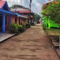 Un pueblo sin calles ni carros, todas son aceras o caminos, y si de ruedas se trata, bicicletas y si acaso dos o tres carretones es lo que se ve; motorizado, solo las lanchas.