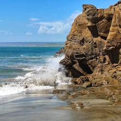 Aunque éste es un pueblo mayormente de pescadores, la zona ya se ha industrializado mucho con la explotación petrolera. Cuando fuimos a dicha playa y vimos cuán cerca está de los pozos y las maquinarias no nos extrañó que fuera difícil verlos. Además, habían dos pescadores justo en la pequeña península donde dicen que se les ve, por lo que no llegamos a encontrarnos con tal colonia.