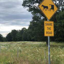 We were in Amish country. I took a photo of an amish buggy. Neil stopped and talked with an Amish farmer. He respectably accepted the interview but did not want his photo taken.