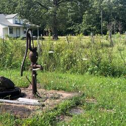 We we drove towards Farmington, Neil stopped when he saw a farmer adding diesel into his tractor. His wife arrived in her Cadilac just as they were about to film. I did not walk out very far into the pasture. Man, the ground was so uneven, I didn't want to sprain my ankle. Instead, I took pictures of the farm and water pump.