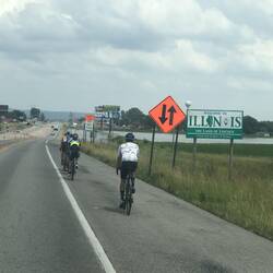 Our route today was changed because the proposed bridge we were going to be traveling across the Mississippi River was closed. So last night, Wes and Jeff looked at options of where to route so that they could ride to Carbondale, IL. It was decided that everyone would drive 20-30 minutes south and then get on their bikes.