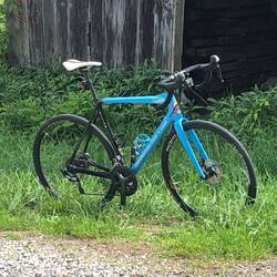 We went through one tunnel and I saw one covered bridge. We stumbled upon a barn and Jon took some photos of the blue bike against the old barn.