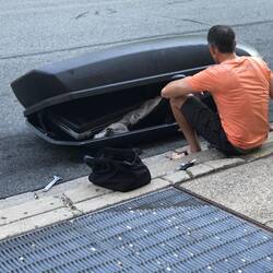 Finally, a technician from the hotel brought a drill gun and Neil as able to drill a hole in the top carry case. I couldn't handle all the drama, so I went upstairs back to the hotel room and took a quick power nap.