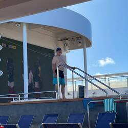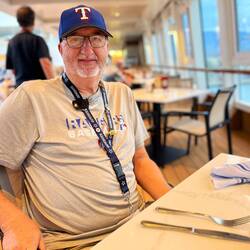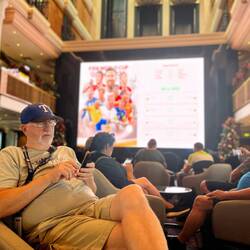 Misc fotos from the ship- Glenn watching World Cup soccer while eating bfast on the pool deck.