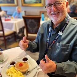 We ate breakfast in the main dining room then talked to Roland to change our diners for tomorrow night.