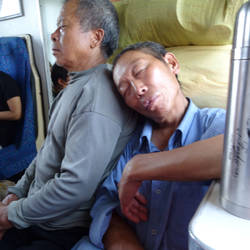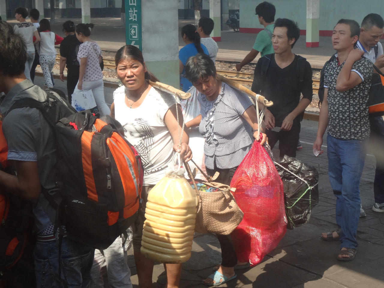 Interessante Mietfahrer habe ich heute wieder. Landfrauen als Trägerinnen. Und Wanderarbeiter, die die restliche Fahrt über komisch riechenden Schnaps trinken.